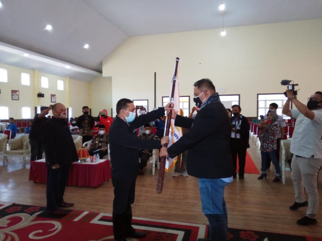 Setelah memimpin pembacaan Janji Prasetya JMSI, Teguh Santosa menyerahkan pataka JMSI kepada Bakri Remmang dan berpesan agar pataka itu dikibarkan di seluruh wilayah Sulawesi Selatan.