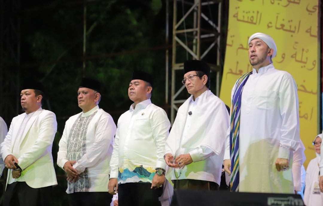 Sebelumnya, Menteri Agama Prof. Nasaruddin Umar menyampaikan pesan kepada ribuan santri, tamu, serta masyarakat yang hadir.
