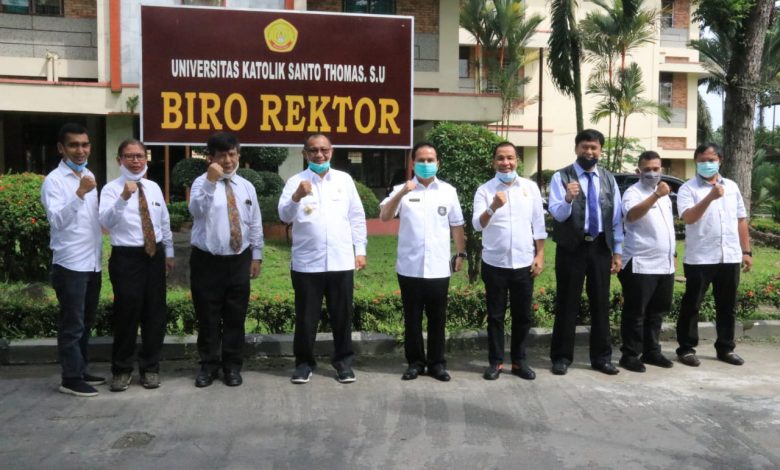 Kepada Plt Wali Kota, Plt Rektor Unika St Thomas Posman Sibuea mengatakan, Unika ST Thomas sejak 17 Maret telah melakukan sejumlah upaya untuk memutus mata rantai penyebaran Covid-19 di lingkungan kampus. Selain menerapkan perkuliah dengan sistem daring, juga menerapkan wajib masker di lingkungan kampus. Kemudian menyediakan wastefal untuk cuci tangan dengan air mengalir dan sabun, serta tidak memperkenankan mahasiswa berkumpul. “Kita mengikuti semua protokol kesehatan yang telah ditetapkan pemerintah untuk memutus mata rantai penyebaran Covid-19 di lingkungan kampus,” jelas Posman.