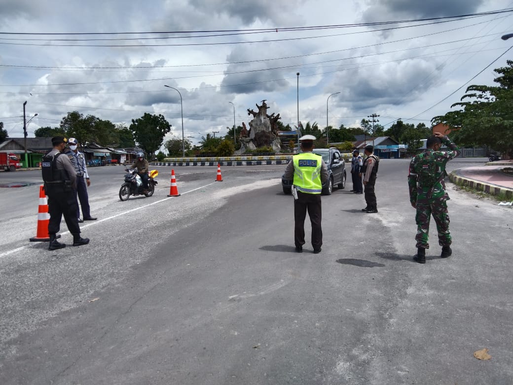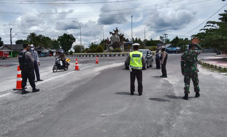 Penutupan Tempat Wisata, Aparat Gabungan Berjaga di Jalan Poros Menuju Tempat Wisata Pantai Kubu