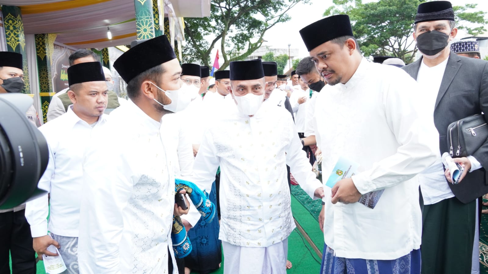 BeritaNasional.ID Medan,- Wali Kota Medan Bobby Nasution terlihat begitu khusyuk saat menjalankan Shalat Idul Adha di Lapangan Gajah Mada Jalan Krakatau Medan, Minggu (10/7/2022). Selain bersama Wakil Wali Kota Medan H Aulia Rachman, Gubernur Sumut Edy Rahmayadi, Dandim 0201/Medan Kol Inf Ferry Muzawad, Sekda Kota Medan Wiriya Alrahman serta sejumlah pimpinan OPD di lingkungan Pemko Medan juga ikut serta dalam Shalat Idul Adha tersebut.