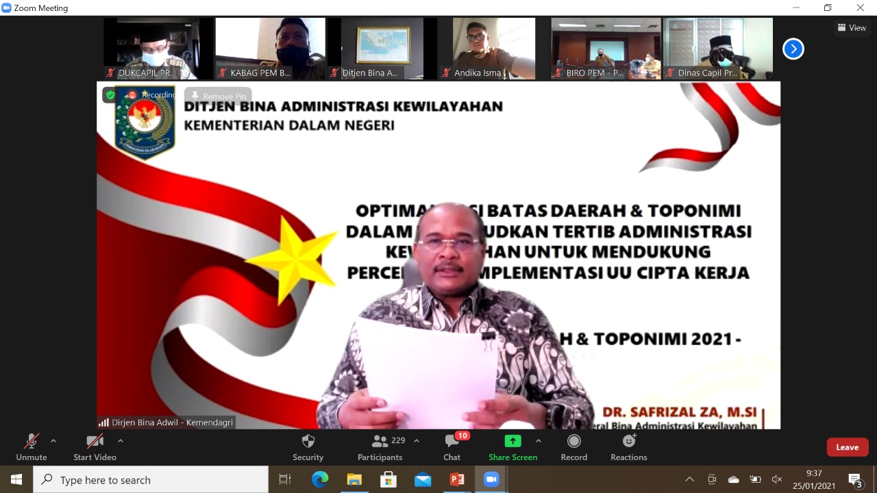 BeritaNasional.ID, Jakarta – Kementerian Dalam Negeri (Kemendagri) melalui Direktorat Jenderal Bina Administrasi Kewilayahan (Adwil) menggelar Rapat Koordinasi Nasional (Rakornas) Toponimi dan Batas Wilayah. Acara yang dilaksanakan pada Senin (25/1/2021) itu dilakukan untuk mengoordinasikan penyelenggaraan pembakuan nama rupabumi, khususnya pulau-pulau yang belum memiliki nama dan batas wilayah daerah yang belum terselesaikan. Pasalnya, nama merupakan bagian yang memiliki kontribusi penting dalam kehidupan kita sehari-hari. Melalui penamaan, kita bisa mengidentifikasi sesuatu hal, baik itu yang berwujud maupun yang abstrak.