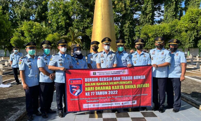 Menjelang puncak peringatan Hari Dharma Karya Dhika ke-77, Lembaga Pemasyarakatan Kelas IIB Probolinggo bersama Rumah Penyimpanan Benda Sitaan Negara Kelas II Probolinggo menggelar ziarah dan tabur bunga di Taman Makam Phalawan Kota Probolinggo, Kamis (18/8).