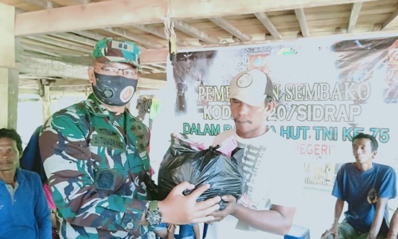 Peringati HUT ke-75 TNI, Kodim 1420 Sidrap Bagikan Sembako di Lokasi TMMD