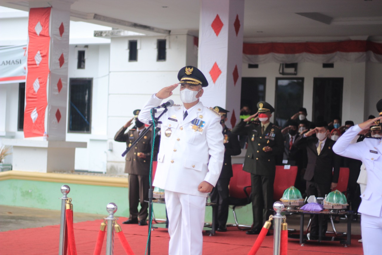 BeritaNasional.ID, Enrekang – Dalam rangka memperingati HUT RI ke 76 Pemkab Enrekang laksanakan Upacara Bendera terbatas yang diikuti perwakilan setiap OPD sebanyak 3 orang di halaman kantor Bupati Kabupaten Enrekang, Selasa 17 Agustus 2021.