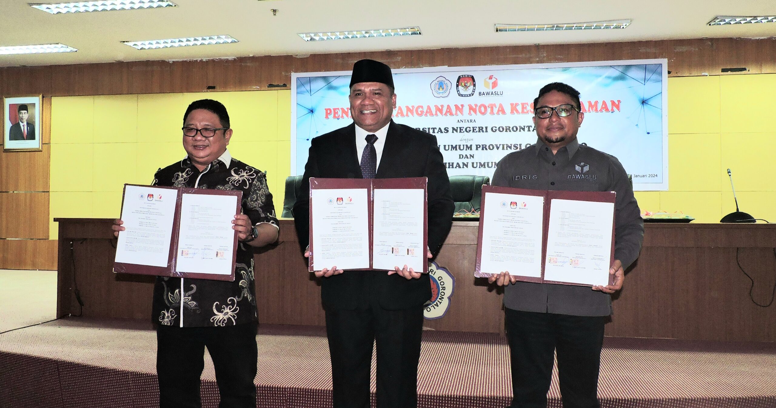 Perkuat Peran PT dalam Mensukseskan Pemilu, UNG Teken MoU dengan KPU dan Bawaslu