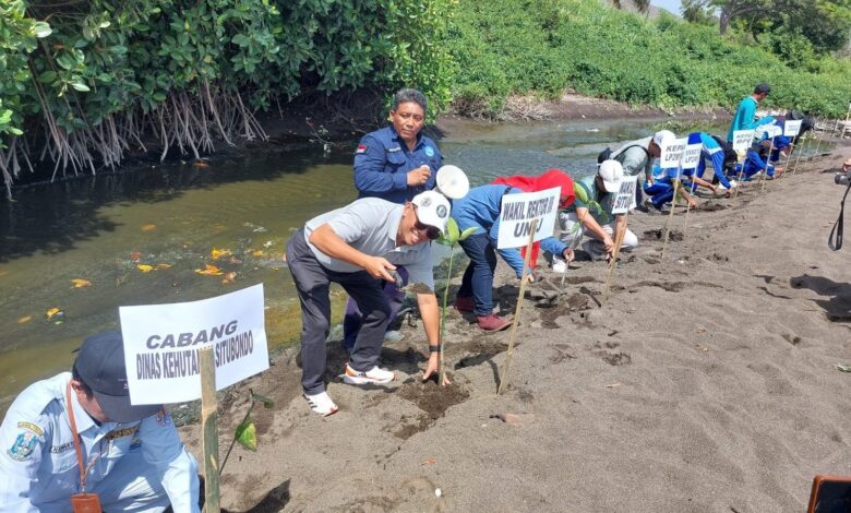 BeritaNasional.id, SITUBONDO – Lembaga Penelitian dan Pengabdian kepada Masyarakat (LP2M) Universitas Jember (UNEJ) melakukan penanaman mangrove di Pantai Batu Landangan, Situbondo. Kegiatan ini menjadi bagian dari program Sekolah Sadar Lingkungan Mangrove Lestari yang melibatkan pelajar, akademisi, dan pemerintah daerah.Rabu (19/11/2025).