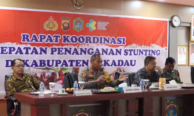 BeritaNasional.ID, SEKADAU KALBAR – Polres Sekadau menggelar rapat koordinasi bersama instansi pemerintahan dan perusahaan swasta, terkait Program Percepatan Penurunan Stunting di aula Kantor Bupati Sekadau, desa Bokak Sebumbun kecamatan Sekadau Hilir pada Jumat (21/7/2023).