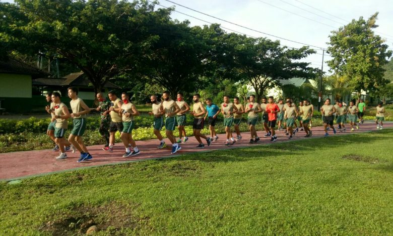 Personel Korem 142/Tatag Joging di sentel ban Lapangan Tammajarra