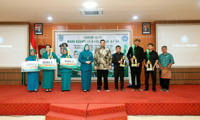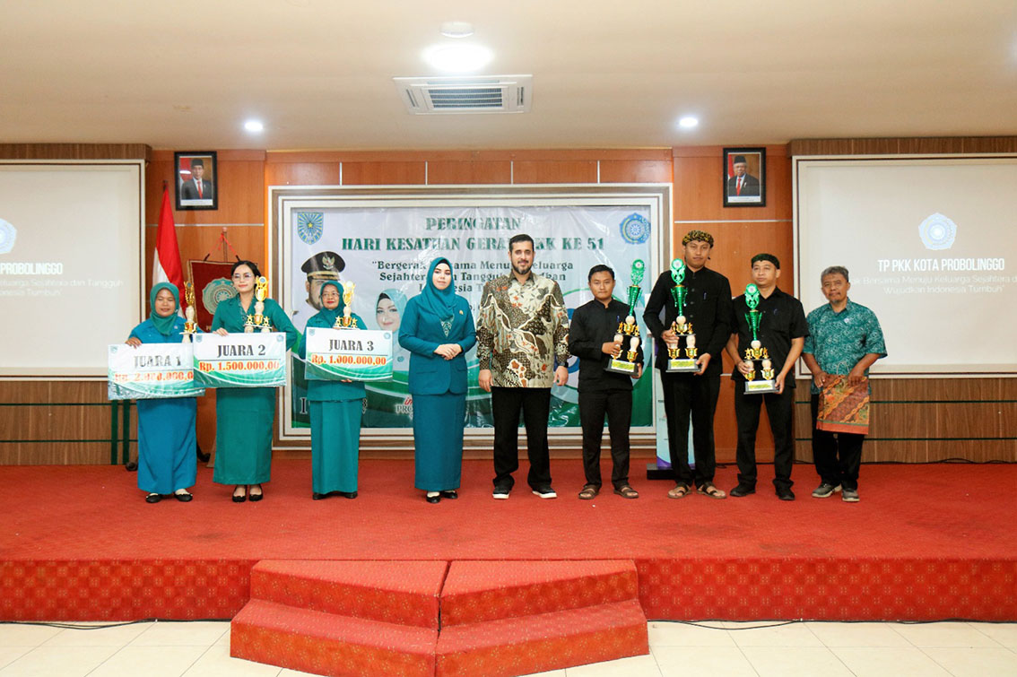 BeritaNasional.ID, PROBOLINGGO – Peringatan Hari Kesatuan Gerak (HKG) PKK ke-51 digelar oleh TP PKK Kota Probolinggo pada Kamis (4/5) pagi di Puri Manggala Bakti Kantor Wali Kota setempat. Wali Kota Habib Hadi Zainal Abidin dan Ketua TP PKK Aminah Hadi hadir bersama dengan puluhan kader PKK dari tingkat kecamatan dan kelurahan. Tema peringatan tahun ini adalah Bergerak Bersama Menuju Keluarga Sejahtera dan Tangguh Wujudkan Indonesia Tumbuh.