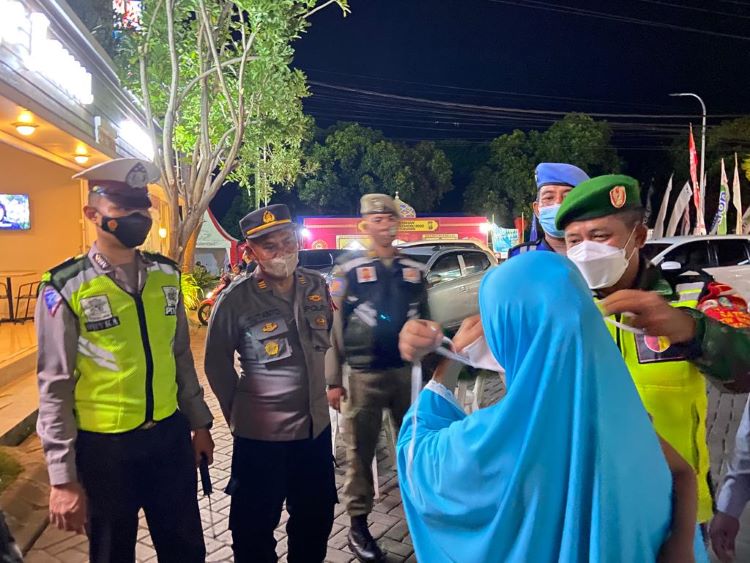 Petugas Gabungan Operasi Kutupat Semeru Banyuglugur Situbondo Bagikan Masker dan Atur Lalu Lintas