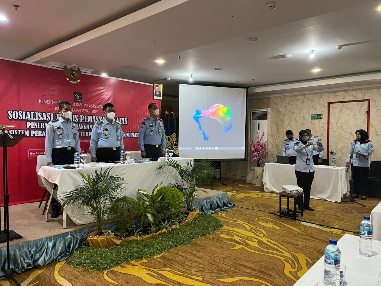 Teguh Wibowo, Bc.IP., S.H., M.Si. selaku Kadivpas Kantor Wilayah Kemenkumham Jatim dalam sambutannya mengatakan bahwa penerapan SPPT TI dilakukan untuk menciptakan keterpaduan instansi penegak hukum dalam menjalankan sistem peradilan.