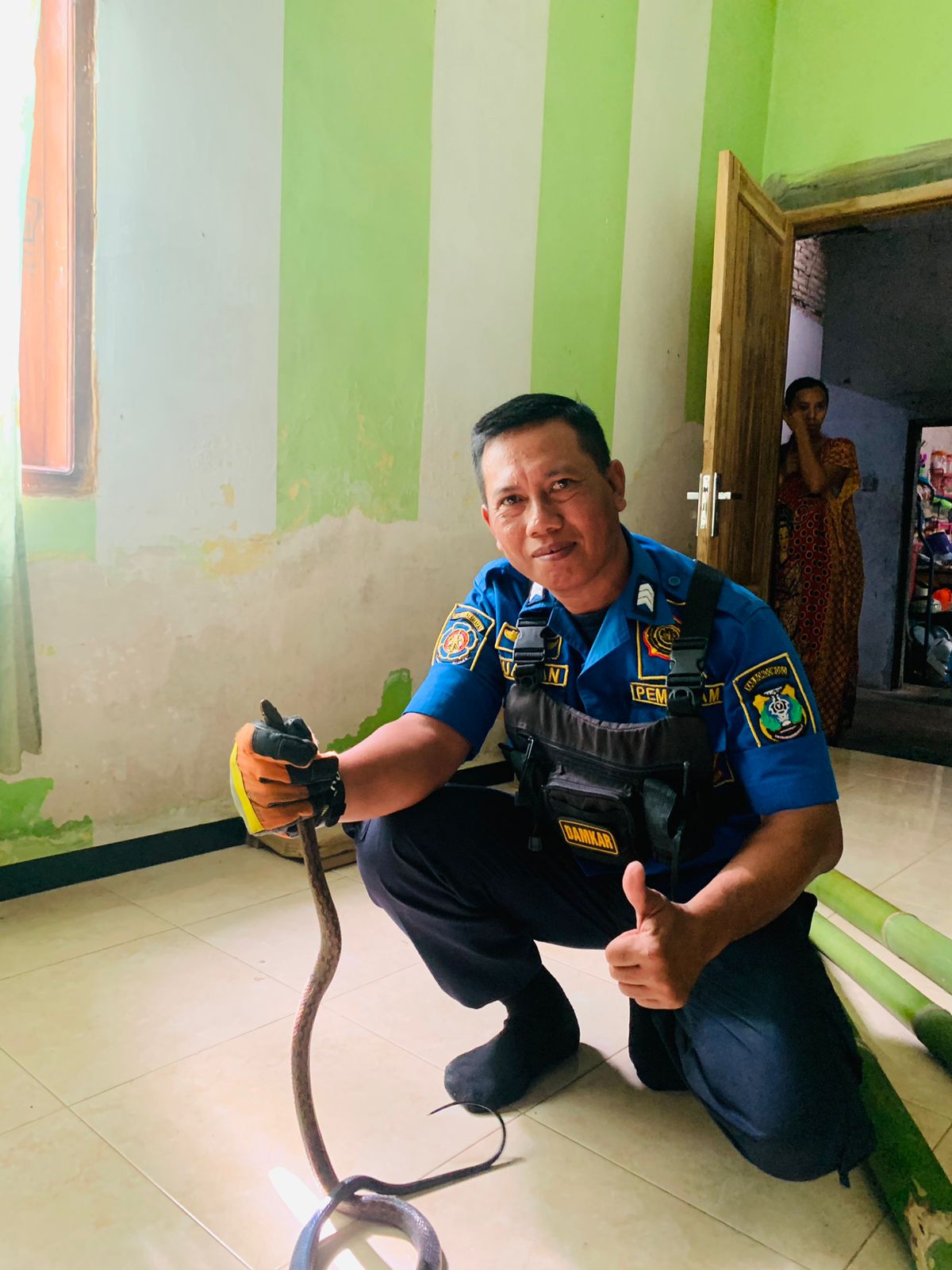 Berita Nasional.ID, BONDOWOSO JATIM – Satpol PP, Damkar, dan Penyelamatan berhasil menangkap ular yang masuk ke rumah Yati. Petugas menerima laporan dari warga Desa Sumberwaru 01 Rt 06 Rw 02, Kecamatan Binakal.