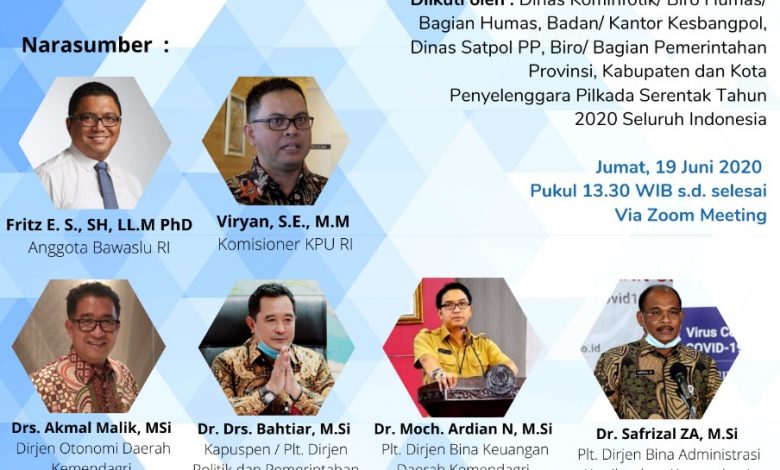 BeritaNasional.ID, Jakarta – Pilkada Serentak yang akan berlangsung 9 Desember 2020 nanti harus dijadikan ruang pertarungan gagasan antar para calon kepala daerah untuk menghadapi musuh bersama yakni Covid-19. Mereka juga ditantang untuk dapat menemukan strategi agar mempercepat pergerakan ekonomi yang terkena imbas pandemi. Hal tersebut disampaikan Plt. Dirjen Politik dan Pemerintahan Umum (Politik & PUM) Kementerian Dalam Negeri (Kemendagri) Bahtiar dalam Satu Meja The Forum Kompas TV tentang Tahapan Pilkada Serentak 2020, Rabu (17/06).