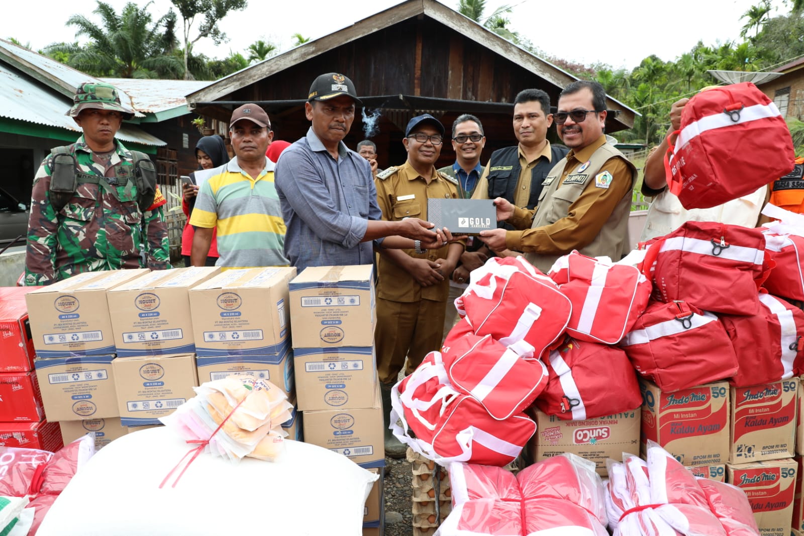 Dalam kunjungan tersebut Pj Bupati Azwardi kembali menyerahkan bantuan pangan dan sandang kepada para korban banjir di Kecamatan Langkahan. Gampong Lubok Pusaka merupakan gampong paling ujung, paling pedalaman, di sebelah timur Aceh Utara. Terletak di kawasan DAS Krueng Arakundoe. Menuju ke sana harus melewati jalan yang rusak akibat gerusan hujan dan banjir. Hujan berkepanjangan menyebabkan badan jalan menjadi berlumpur tebal dan rusak berat. Susah dilewati.