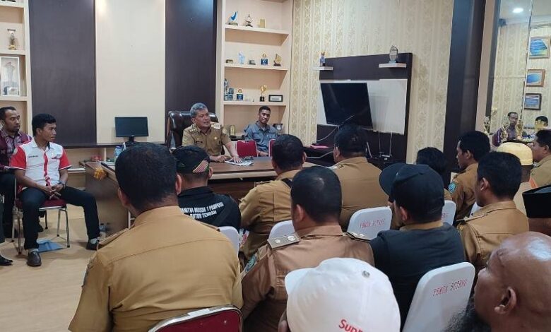 BERITANASIONAL.ID, BUTON TENGAH – Penjabat Bupati (Pj.) Buton Tengah dan sejumlah kepala desa diterima audiens dan bertemu diruangan kerja bupati membahas kekeliruan dalam perhitungan alokasi dana desa (ADD) tahun anggaran 2023. Kamis, (8/12/2022).