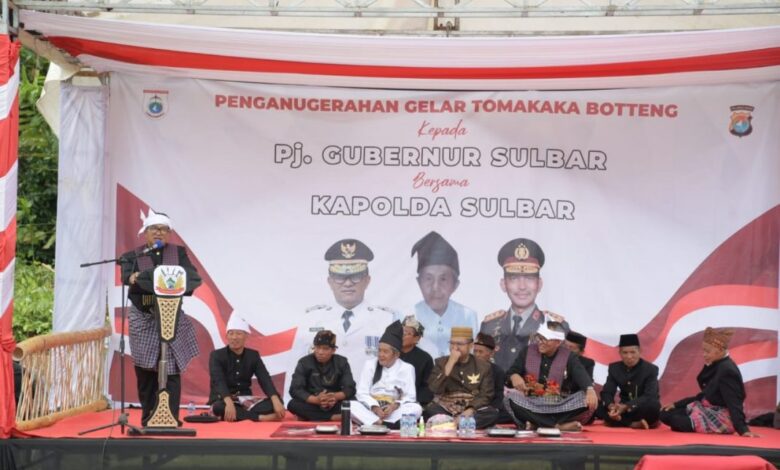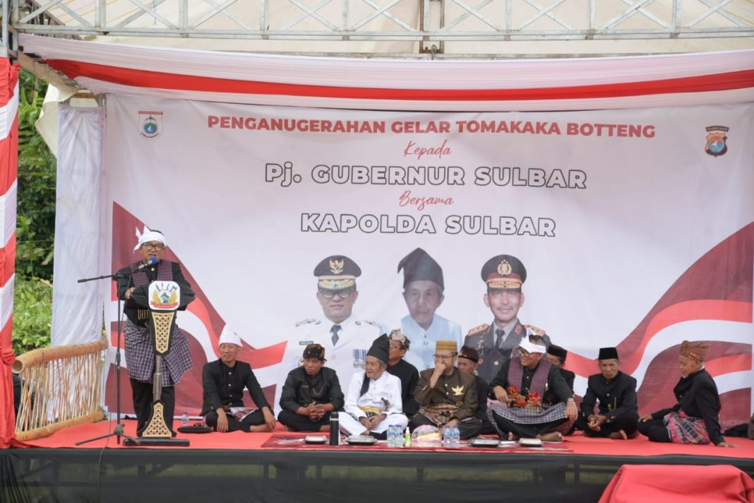 Pj Gubernur Sulbar Bersama Kapolda Sulbar Dianugerahi Sebagai Tomakaka Malaqbi
