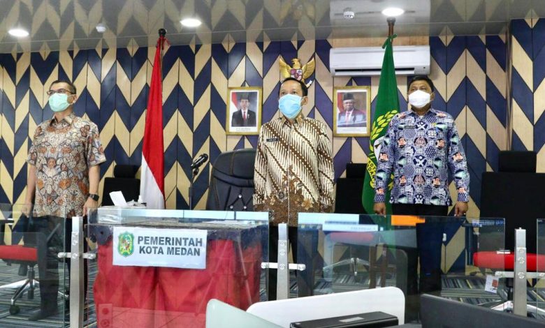 BeritaNasional.ID Medan – Penjabat Sementara (Pjs) Wali Kota Medan Ir Arief Sudarto Trinugroho MT mengikuti Rapat Koordinasi Nasional (Rakornas) Pengendalian Inflasi 2020 secara virtual di Command Center Balai Kota Medan, Kamis (22/10/2020). Tujuannya, guna menyamakan visi, misi, langkah dan persepi dalam menghadapi dan mengendalikan inflasi di Indonesia.