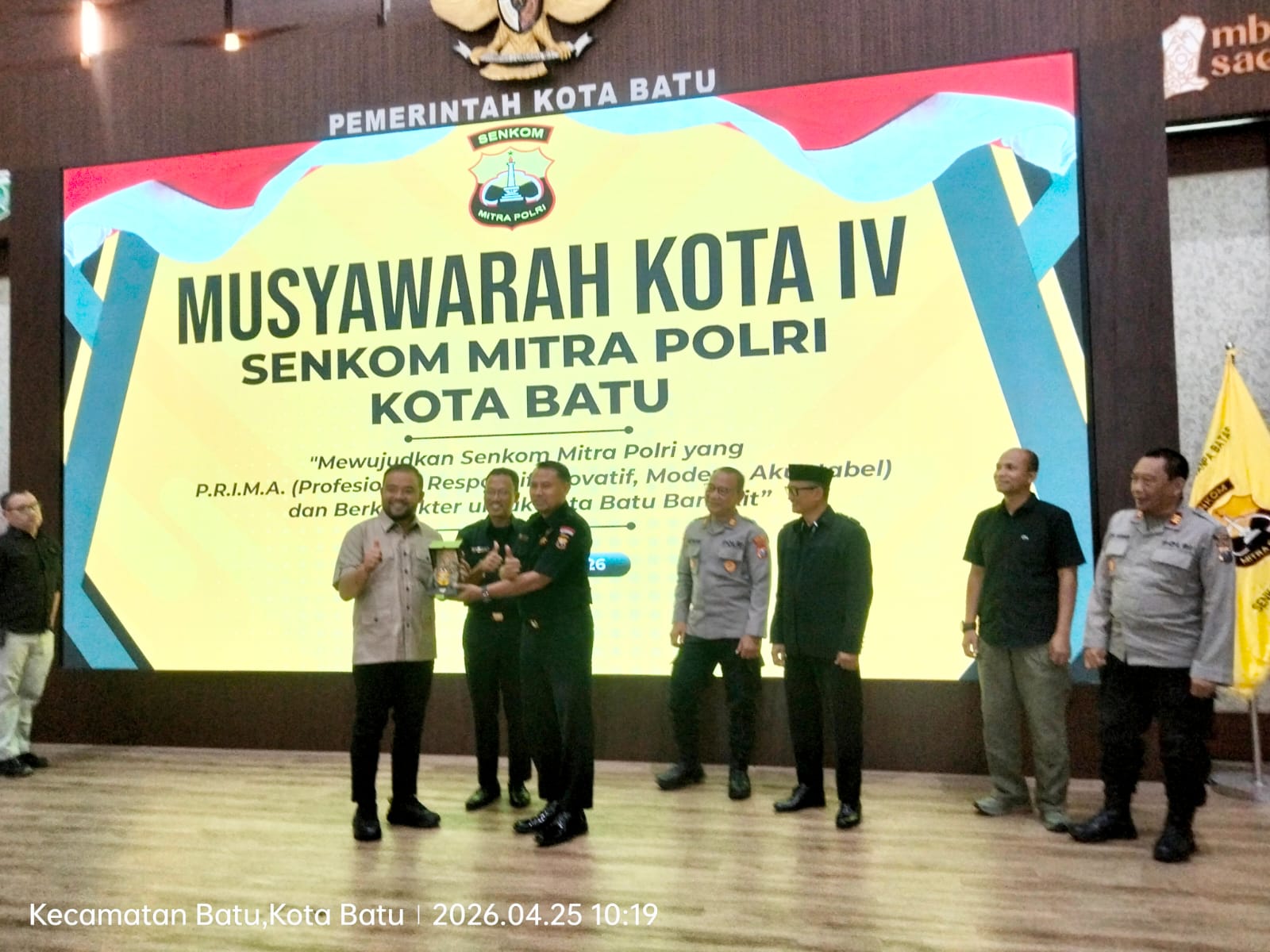 BeritaNasional.id- KOTA BATU –Pelaksana Tugas(Plt) Wali Kota Batu, Heli Suyanto, menegaskan pentingnya peran Senkom Mitra Polri Kota Batu dalam mendukung kegiatan kemasyarakatan, khususnya di bidang sosial dan kebencanaan. Hal itu disampaikan dalam Musyawarah Kota (Muskot) IV Senkom yang digelar di Gedung Graha Pancasila, Kota Batu, Sabtu (25/04/2026).
