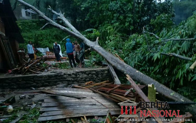 BeritaNasional.ID, SITUBONDO. JAWA TIMUR – Hujan disertai angin yang cukup kencang mengakibatkan pohon Angsana tumbang menimpa rumah Pak Sukri(35) di Dusun Alas Pinang, RT. 03 RW.04, Desa Sumberpinang, Kecamatan Mlandingan,