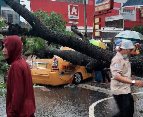 BeritaNasional.ID Medan – Pohon tumbang menimpa mobil angkutan kota (angkot) KPUM 62 di depan Rumah Sakit Umum Pusat (RSUP) H Adam Malik Medan, Senin (28/6/2021) sekitar pukul 17.30 WIB. Dua orang meninggal dan tiga lainnya mengalami luka-luka dalam peristiwa itu.