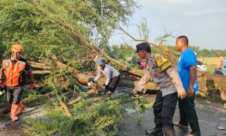 Pohon Tumbang Tutup Jalan Sragi–Kesesi, Polisi Gerak Cepat Lakukan Evakuasi