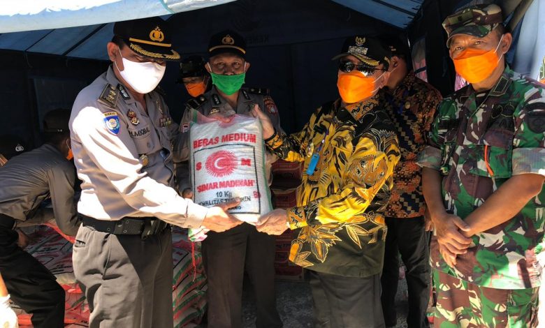 Batuan tersebut langsung diserahkan kepada Bupati Mateng di dampingi Kapolres Mateng, bantuan yang diserahkan berupa beras, indomie, APD, masker, Hand Santizer dan sebagainya.