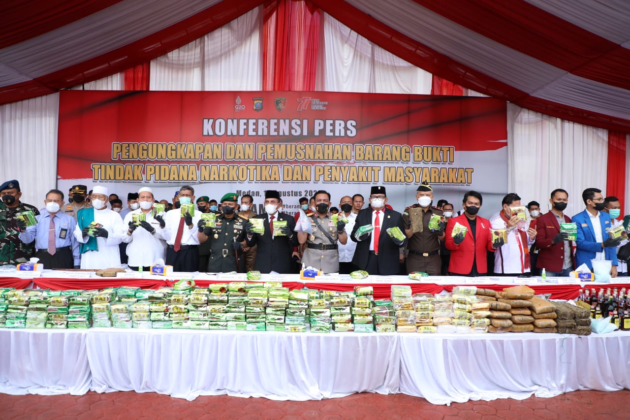 Hal tersebut disampaikan saat Konferensi Pers pengungkapan dan pemusnahan barang bukti Narkotika dan penyakit masyarakat di Mapolda Sumut, Selasa (16/8/2022).