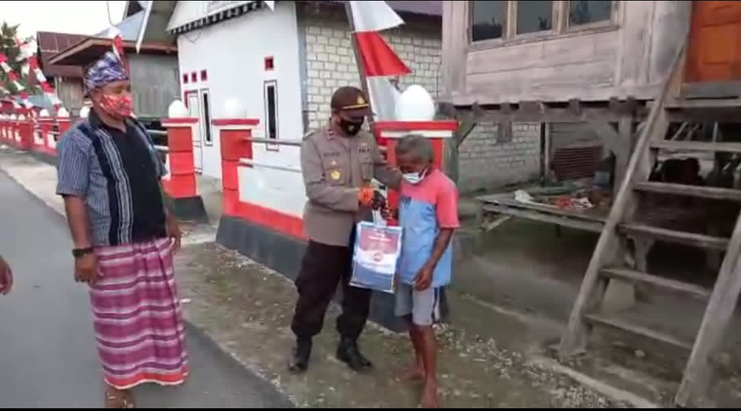 Pembagian bantuan sosial tersebut dipimpin langsung Kapolsek Mawasangka Timur Ipda Musrifin, S.P yang didampingi oleh Bhabinkamtibmas dan personil piket mako polsek.