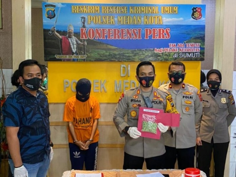 “Atas Informasi tersebut, selanjutnya Tim Reskrim melakukan penyelidikan di TKP dan pada saat di TKP team mencurigai seorang perempuan yang mengendarai sepeda motor Honda Revo BK 55xx ABQ,” ujar Irsan, Selasa (19/1/2021) di Mapolsek Medan Kota.