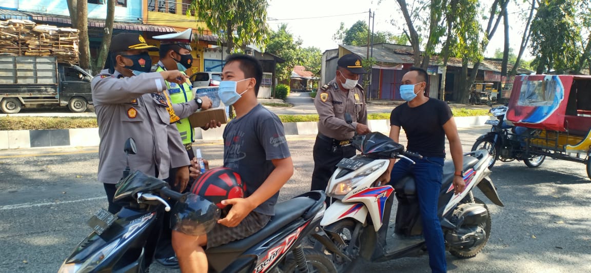 Selain membagikan masker dan hand sanitizer, mereka juga memberikan himbauan kepada masyarakat pengguna jalan agar tetap mematuhi protokol kesehatan. Serta tetap mematuhi peraturan Lalulintas, dan melengkapi surat-surat kendaraan ketika berkendaraan.