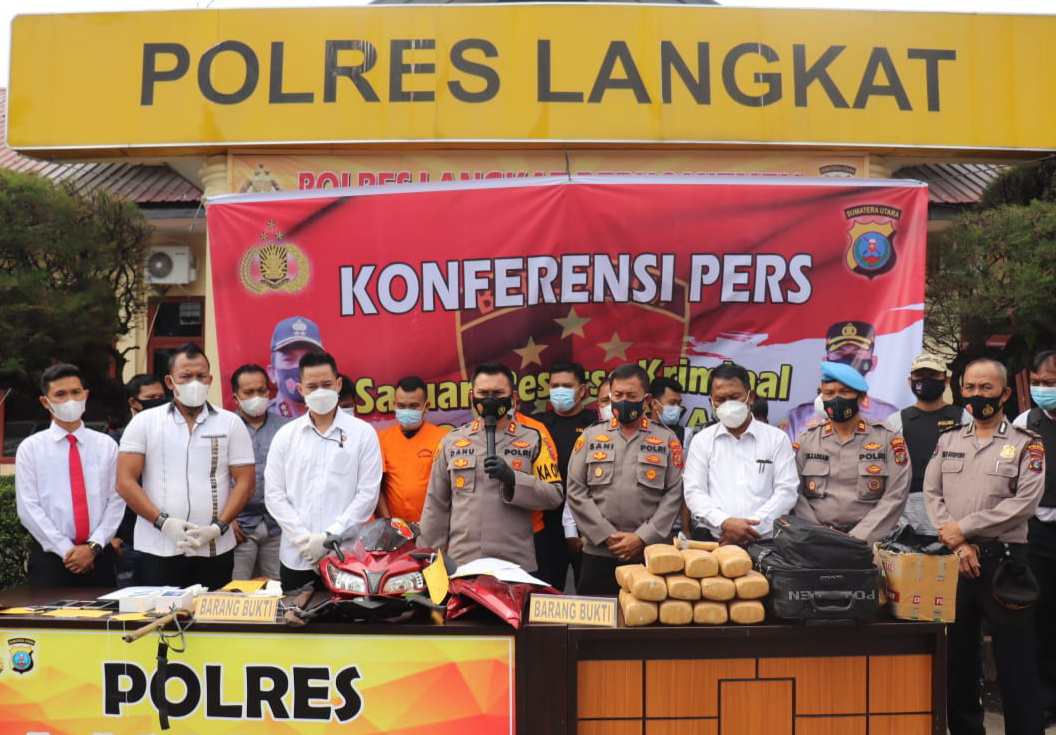 Dalam kesempatan tersebut, Kapolres Langkat menyampaikan keberhasilan dalam pengungkapan beberapa kasus, diantaranya kasus narkotika jenis ganja, yakni yang terjadi pada Sabtu 31 Juli 2021 lalu, sekira pukul 01.00 Wib, dimana Polres Langkat telah mengamankan pelaku tindak pidana Narkotika jenis ganja sebanyak 20 bal atau seberat 20 Kg.