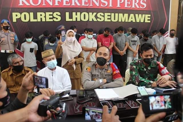 Hadir dalam konferensi pers tersebut, Dandim 0103 Aceh Utara, Letkol Arm Oke Kistiyanto SAP, pihak MPU Kota Lhokseumawe, Dinas Sosial dan Satuan Polisi Pamong Praja dan Wilayatul Hisbah (Satpol PP-WH) Kota Lhokseumawe.(*)