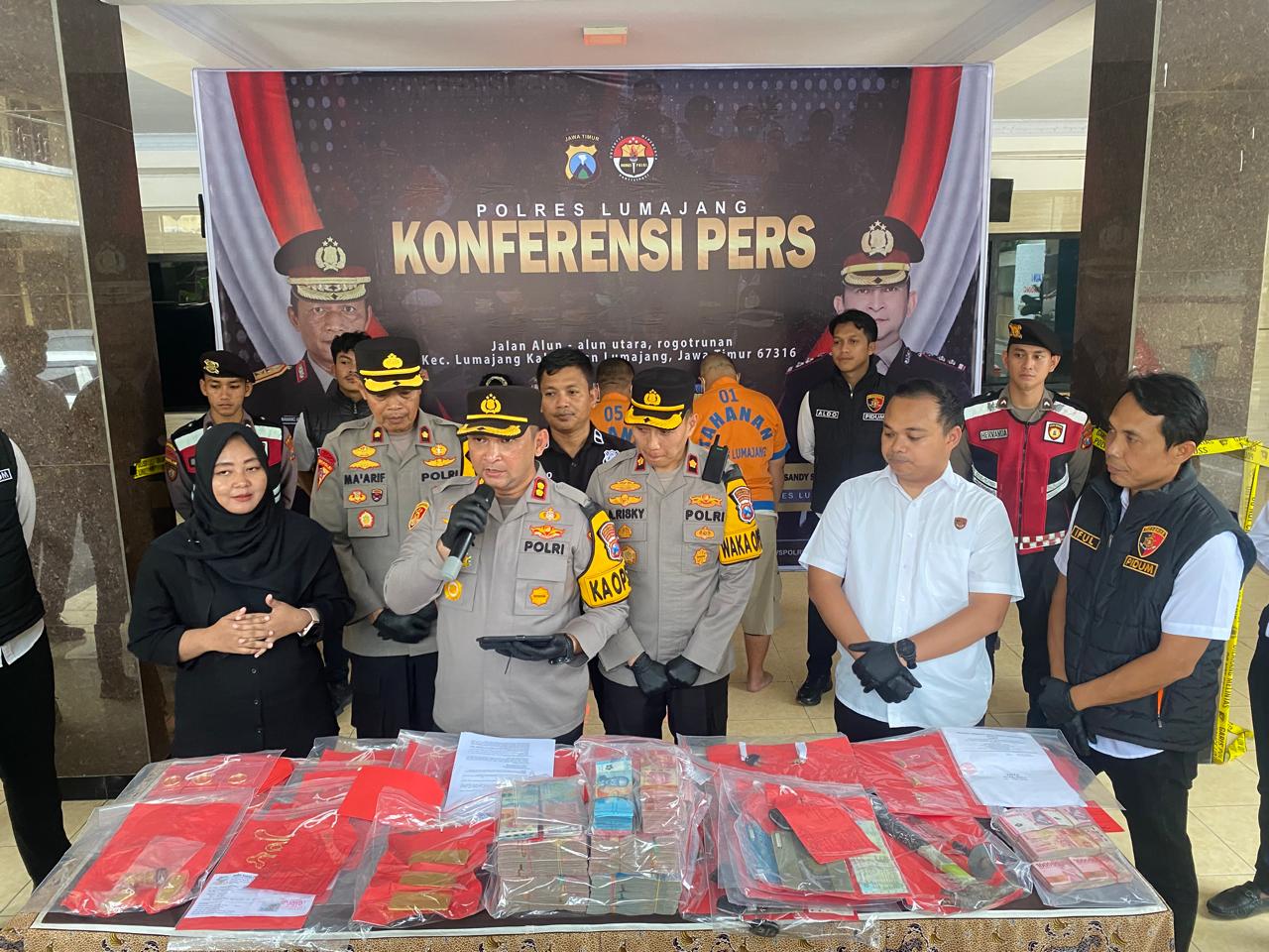 Dalam konferensi Perss kapolres lumajang AKBP Alex Sandy Siregar mengungkapkan ketiga pelaku yang berhasil di amankan, perempuan inisial S serta Inisial KH dan Inisial AJ ketiga pelaku warga Lumajang.