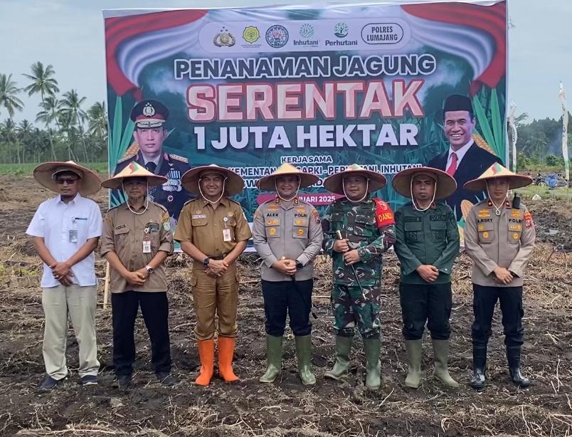 BeritaNasional.ID, LUMAJANG JATIM – Dalam Upaya tingkatkan Swasembada Pangan Nasional, Pemerintah Republik Indonesia laksanakan penanaman Jagung Serentak 1 Juta Hektar yang bekerja sama dengan Polri, Kementan RI, GAPKI, Perhutani, Inhutani, Swasta, Swdaya petani.