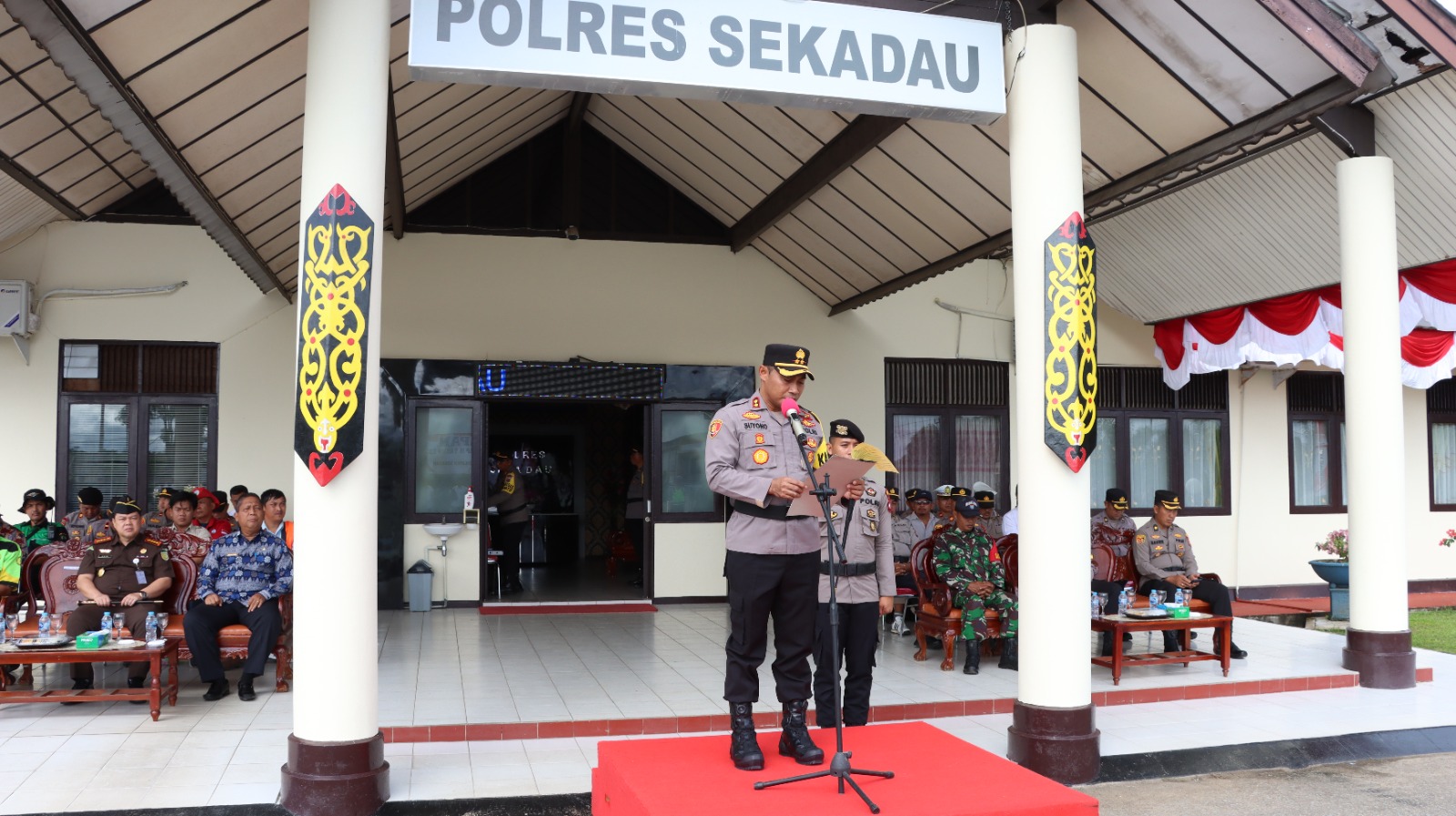 Bertindak sebagai Irup, Kapolres Sekadau AKBP Suyono, membacakan amanat Kapolda Kalbar, Irjen Pol Pipit Rismanto.