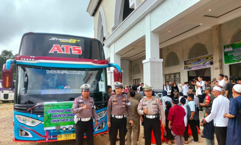 Kapolres Sekadau AKBP Suyono melalui Kasat Lantas IPTU Pandi menuturkan, rombongan jamaah Haji mulai berangkat dari Pontianak pada Rabu (2/8) malam menggunakan 1 unit mobil Bus ATS, kemudian tiba di Masjid Agung Sekadau pada Kamis (3/8) pagi.