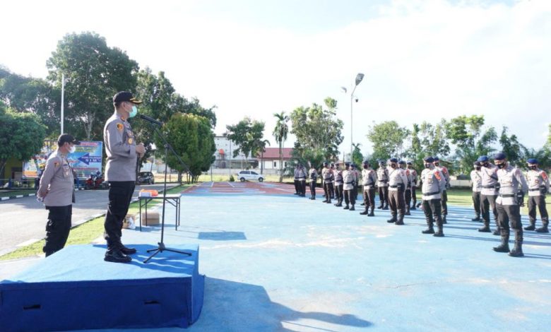 BeritaNasional.ID, Sekadau-Kapolres Sekadau AKBP K. Tri Panungko, S.I.K., M.M bersama para PJU menyambut kedatangan personel BKO Polda Kalbar di Polres Sekadau, Senin (7/12/2020) sore.
