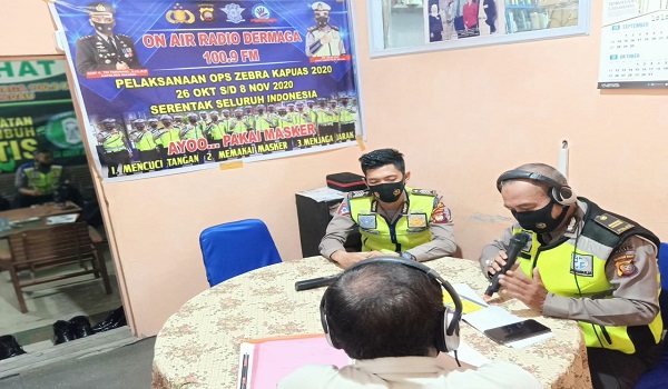 BeritaNasional.ID, Sekadau – Jajaran Polres Sekadau melalui satuan tugas Operasi Zebra Kapuas 2020 laksanakan sosialisasi Kamseltibcar Lantas dan Protokol Kesehatan Covid-19 melalui media elektronik radio Dermaga 100.9 FM Sekadau, Jl. Merdeka Selatan, Rabu (4/11/2020).