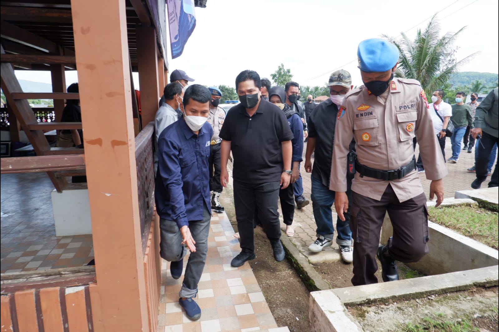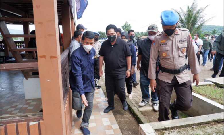 BeritaNasional.ID Serang Kota Banten  – Kunjungan kerja Menteri Badan Usaha Milik Negara (BUMN) Republik Indonesia Erick Tohir dengan pengaman puluhan petugas Kepolisian dari Polres Serang Kota Polda Banten dan Polsek di Pemancingan Barugbug Kecamatan  Padarincang Kabupaten Serang, Rabu (20/10/2021).