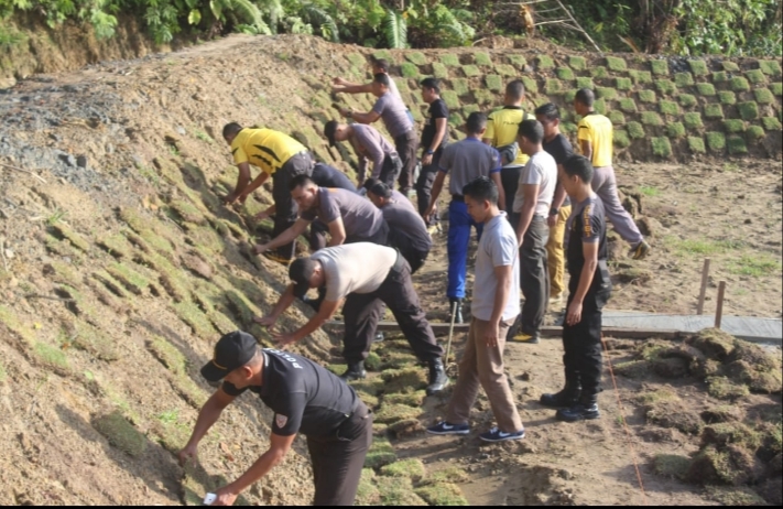 BeritaNasional.id, Sinabang – Seluruh personil Polres Simeulue melakasanakan gotong royong pembangunan lapangan tembak di kabupaten Simeulue Aceh.