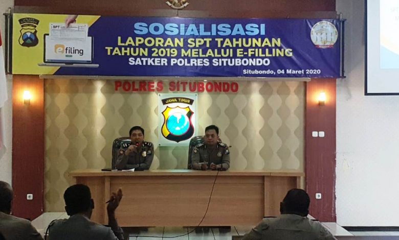 BeritaNasional.ID, SITUBONDO – Siekeu Polres Situbondo melaksanakan sosialisasi pengisian dan pelaporan SPT tahunan pajak PPH 21 orang pribadi TA 2019 secara elektronik (online) melalui website Direktorat Jenderal Pajak www.djponline..pajak.go.id, Kamis (5/3/2020)