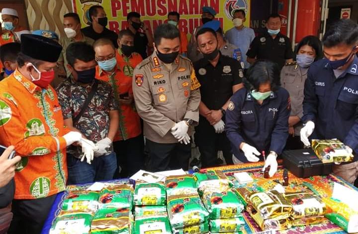 Kapolrestabes Medan, Kombes Pol Riko Sunarko mengatakan, barang bukti sabu 35 kilogram yang dimusnahkan merupakan hasil penangkapan yang dilakukan pada 21 Mei 2020 dan 31 Mei 2020 lalu. Kapolrestabes Medan memaparkan barang bukti tersebut 5 kilogram didapat dari tersangka I (30) di Hotel kawasan Jl. SM Raja Medan pada 21 Mei 2020 dan dari tersangka DS (40) warga Tanjung Balai yang ditembak mati di Jl. Sungai Apung, Kec. Bagan Asahan karena membawa sabu 30 kilogram pada 31 Mei 2020 lalu.
