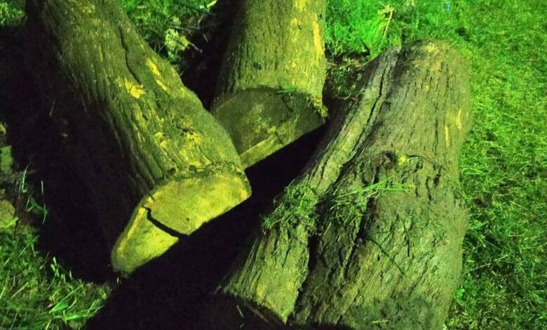 “Kedua warga yang diamankan berinisil MP (30) dan NY (29), keduanya warga Banyuputih, dengan barang bukti, tiga batang kayu jati gelondong masing-maisng panjang 120 cm diameter 25 cm, 3 unit sepeda motor terdapat tali tampar dan tali karet warna hitam, dua buah gergaji dan satu buah pecok dan meteran, ucap Kapolsek Asembagus.