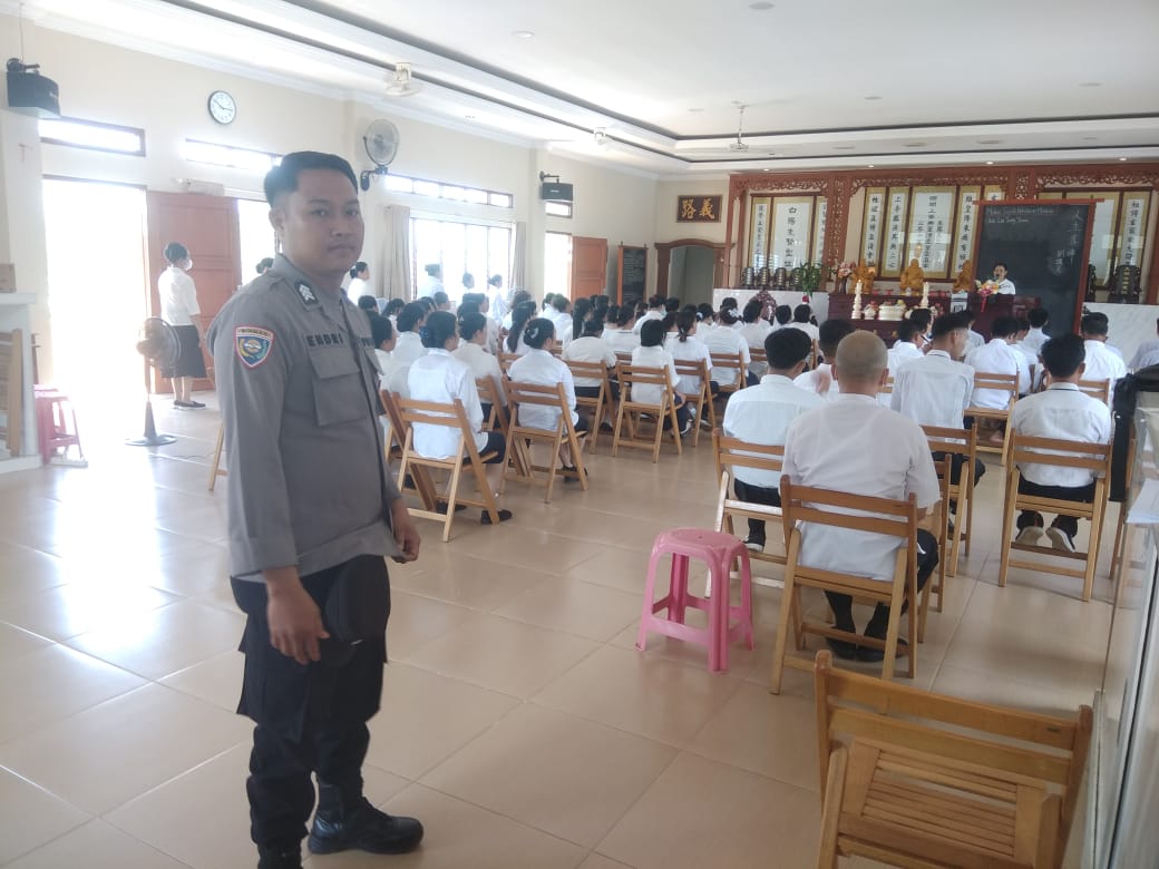 Polsek Belitang Hilir Berikan Pengamanan Kegiatan Kelas Dharma di Vihara Dharma Suci Sungai Ayak