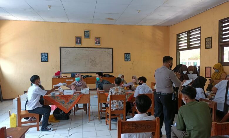 Polsek Cibadak Polres Lebak terus laksanakan kembali Vaksinasi Covid-19 Massal kali ini sasaran Pelajar Siswa-Siswi SMPN 2 Cibadak