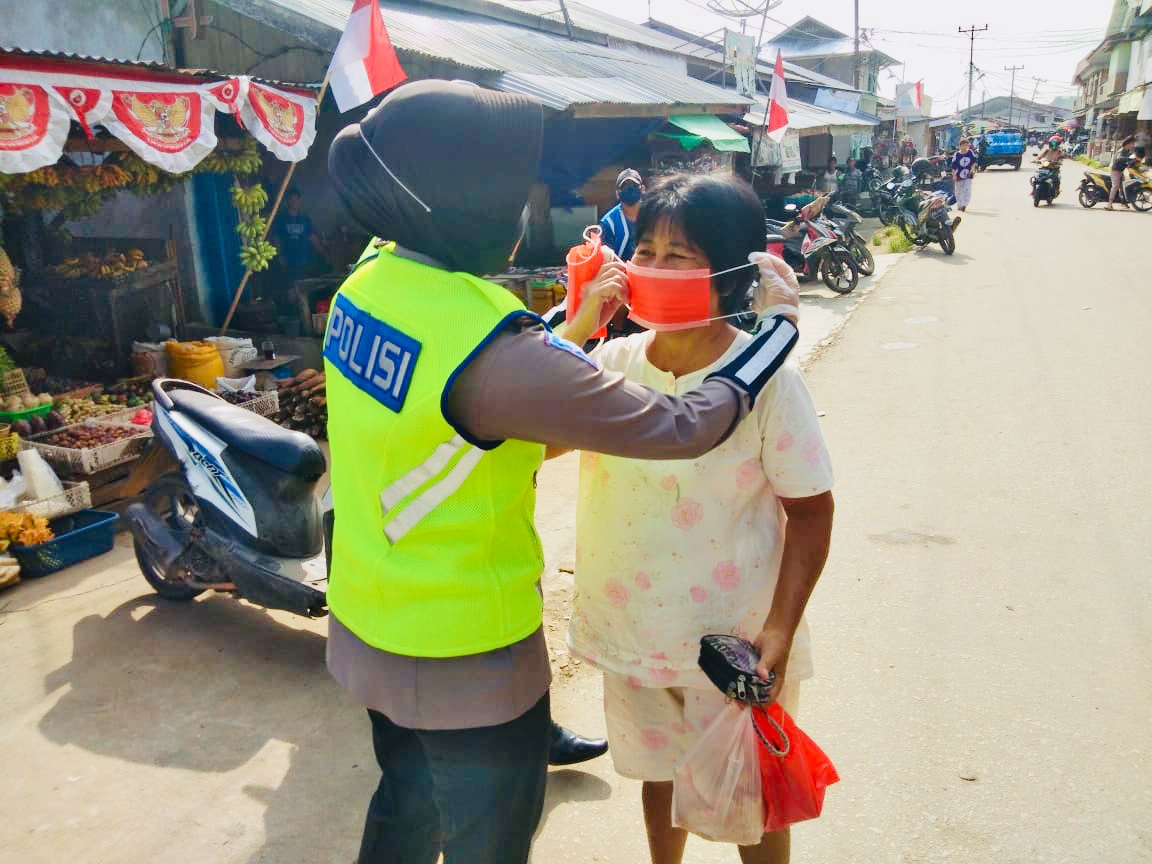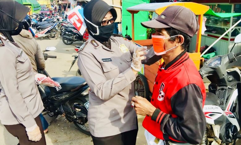 Pada saat membagikan masker, para polwan juga mengingatkan masyarakat agar tertib dan disiplin protokol kesehatan terutama mengenakan masker saat beraktivitas diluar rumah.