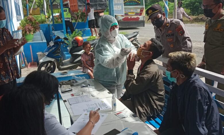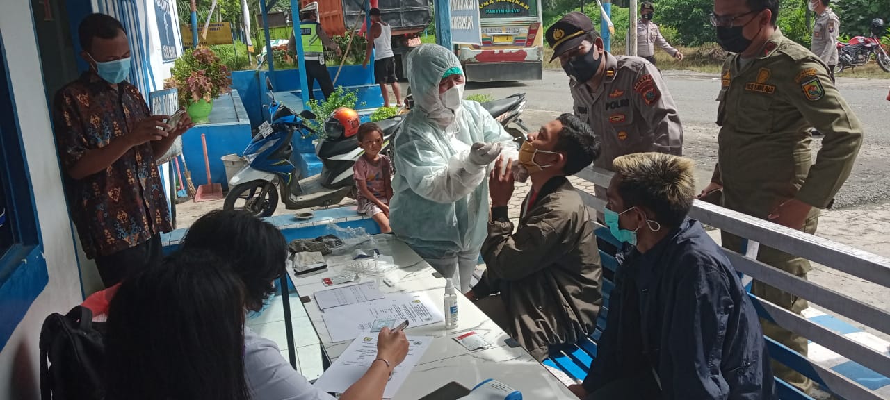 Pemeriksaan kendaraan yang melintas sebanyak 7 unit kendaraan terdiri 4 unit roda dua dan 3 unit roda empat, Serta Pemeriksaan anti gen terhadap pengendara yang melintas, 2 warga hasilnya negatif dan nihil pelanggaran.