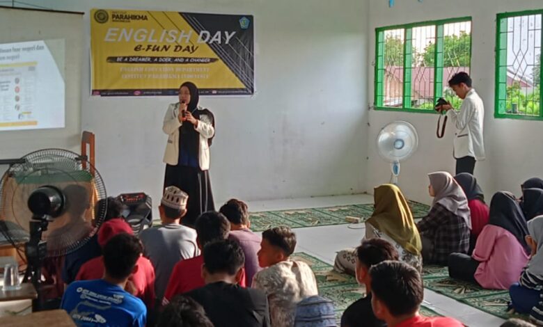 BeritaNasional.ID, GOWA — Bertempat di Pondok Pesantren Ash-Shalihin Gowa. Jum’at, 11 Maret 2022, Puluhan santri mengikuti kegiatan sehari senang Bahasa Inggris dengan istilah E-Fun Day. Kegiatan ini diselenggarakan dengan kerja sama mahasiswa Institut Parahikma Indonesia. Ini bertujuan agar para santri senang belajar Bahasa Inggris.