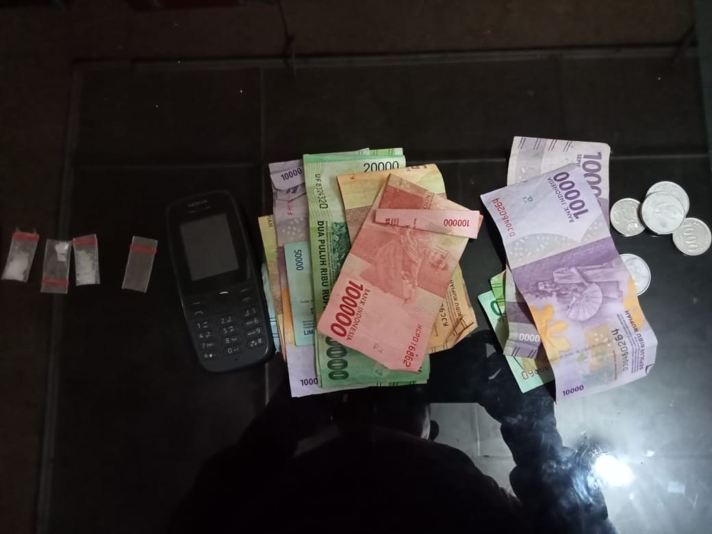 Dari penangkapan itu petugas menyita 3 bungkus plastik klip kecil transparan diduga berisi narkotika jenis sabu, 1 bungkus plastik kecil kosong, uang sebesar Rp.313.000 dan 1 buah Handphone Nokia warna hitam.